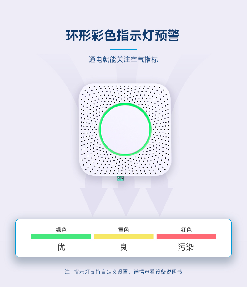 二氧化碳、温度、湿度、颗粒物、TVOC、甲醛、氨气、硫化氢、氧气、二氧化硫等,以实际所购版本为准。